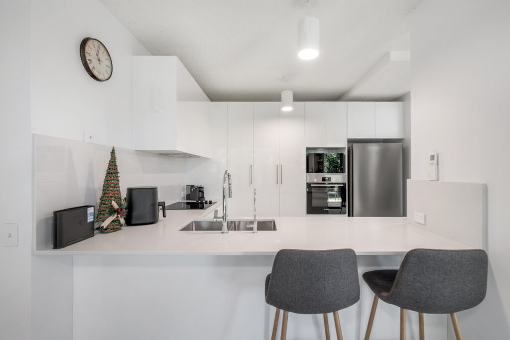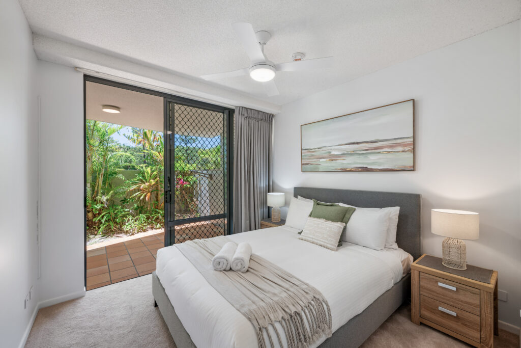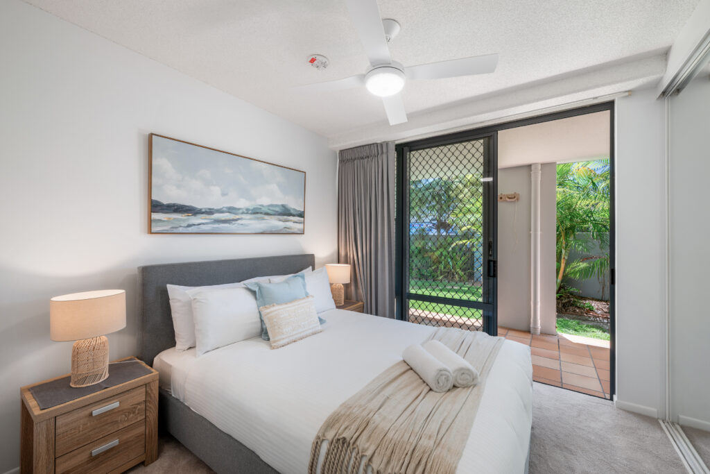 Step inside to a light-filled open-plan living space, complete with air conditioning, ceiling fans throughout, and a fully equipped kitchen with everything you need for a carefree stay. Slide open the doors to your private, fully fenced backyard and lush gardens, offering a wonderful sense of privacy, it feels like a tropical hideaway, yet you’re only footsteps from the beach.